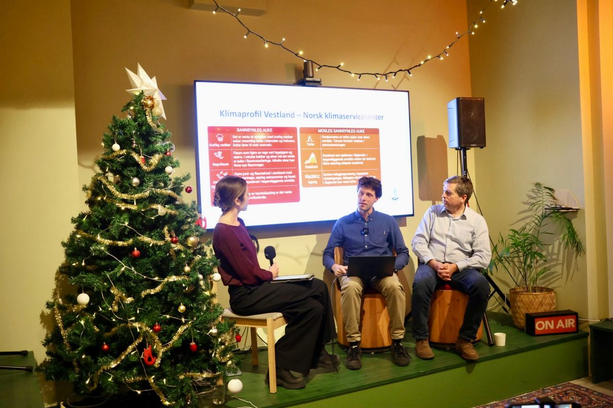 Tysdag inviterte me til live podkastinnspeling i Bergen om korleis klimaendringane vil påverka Hardanger i åra som kjem.